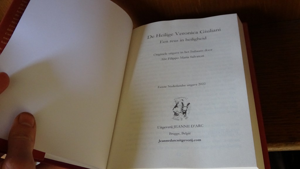 In onze vorige nieuwsbrief belichtten we de boeken die we tot dan toe reeds hadden uitgegeven in 2022. Daar is nu nog de ‘kers’ op de taart bijgekomen: het boek over het leven van de H. Veronica Giuliani, de grote Italiaanse 17de-eeuwse mystica. Na ruim anderhalf jaar vertaalwerk is het boek eindelijk af. Een prachtige uitgave met linnen hardcover en wikkelkaft. Moge het boek bijdragen tot haar bekendwording in onze contreien!